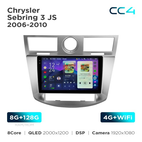 Штатная магнитола Teyes CC4 2k 8+128 Gb Chrysler Sebring 3 JS 2006-2010 9"