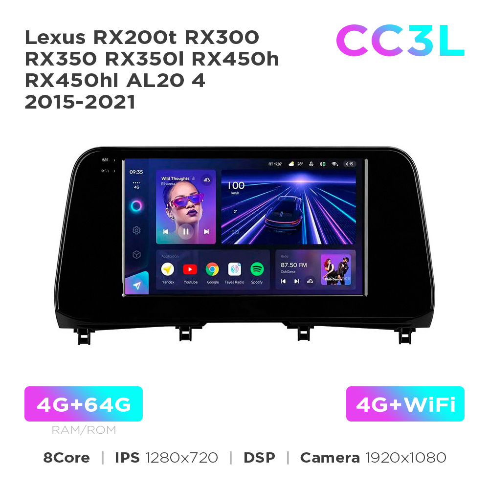 Штатная магнитола Teyes CC3L 4+64 Gb Lexus RX200t RX300 RX350 RX350l RX450h RX450hl AL20 4 2015-2021 10"