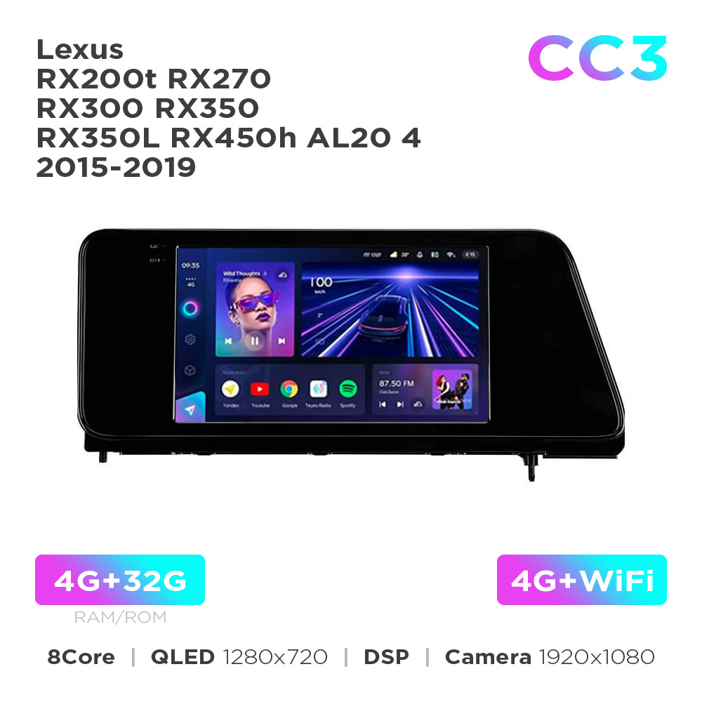 Штатна магнітола Teyes CC3 4+32 Gb Lexus RX200t RX270 RX300 RX350 RX350L RX450h AL20 4 2015-2019 (0 Din) 10"