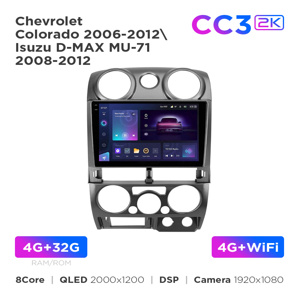 Основні характеристики Штатна магнітола Teyes CC3 2k 4+32 Gb Chevrolet Colorado 2006-2012 / Isuzu D-MAX MU-71 2008-2012 9"